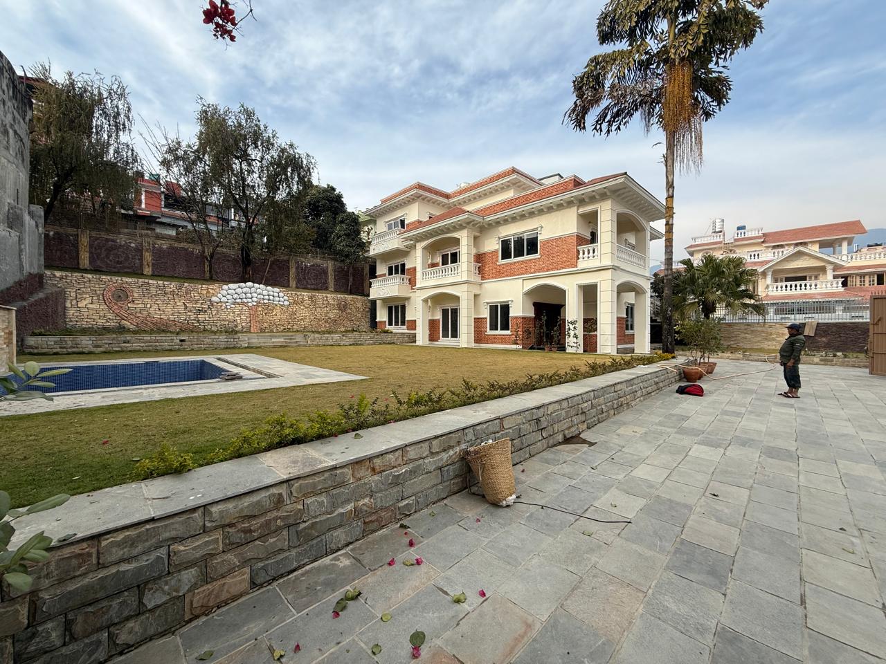Experience elite living with this massive 3BHK bungalow for sale in Golfutar VIP community, set on an expansive 29 aana land in one of Budhanilkantha’s most prestigious residential areas. Priced at Rs. 26.5 Crore, this east-facing luxury bungalow features a servant quarter, a huge landscaped garden with a private swimming pool, and ample parking for 4–6 cars, offering unmatched space, privacy, and comfort. Ideal for buyers seeking a luxury bungalow in Kathmandu, premium property in Golfutar, or a high-end residence in a VIP neighborhood with long-term value.