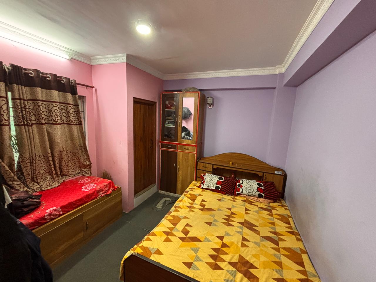 3 Aana House for Sale in Hattiban, Near LA School , Built in 2074, this East facing home features a 1 BHK rental unit on the ground floor and a 3 BHK owner's unit upstairs with 2 attached bathrooms. Situated on a 12-feet wide dalan, the property is semi-furnished and includes parking for 1 car and 4-5 bikes. Ideal for a family seeking rental income in a prime location.