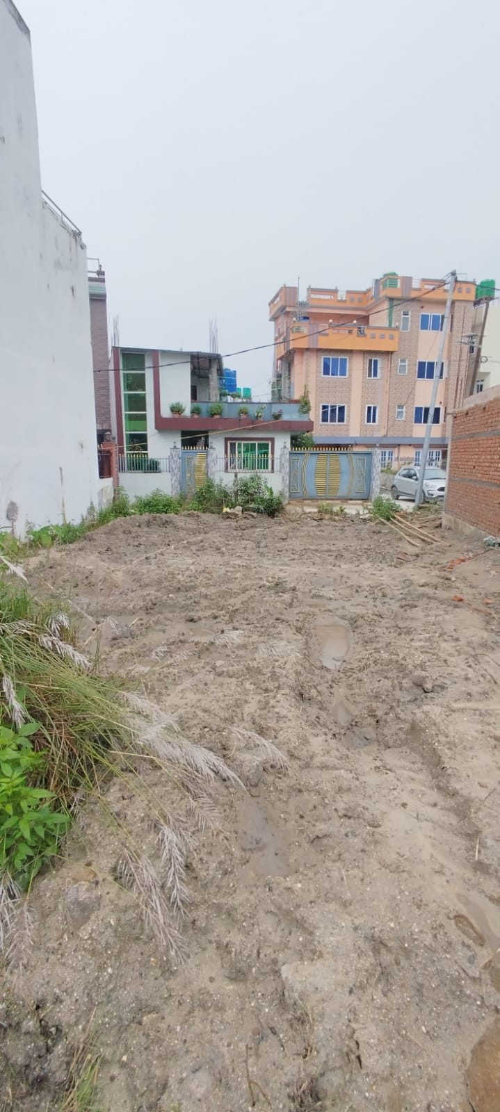 The land area is 4 aana.The land has road access on both sides 13 feet wide roads at the front and back. The road is on south faced and north east.